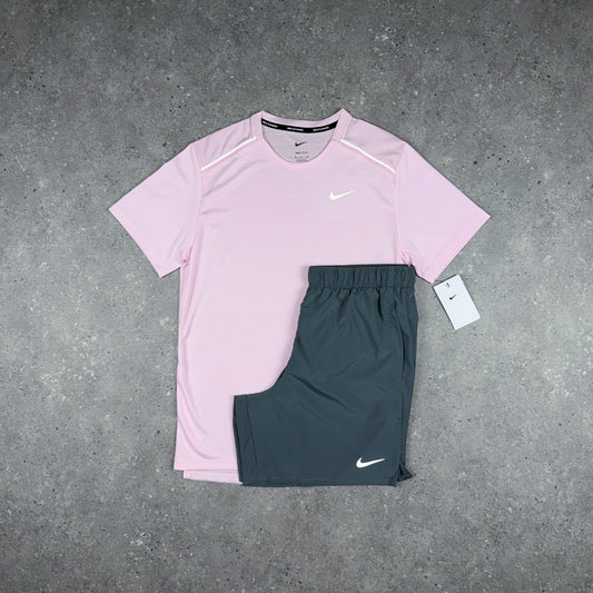 NIKE MILER T-SHIRT SHORTS SET PINK FOAM